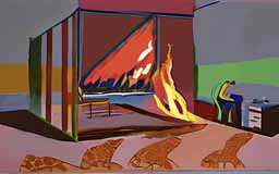 Alex Fischer composes his figures and landscapes by assembling a variety of visual and conceptual sources. Keeping in mind that ideas of the future are inevitably the fastest to change, Fischer maintains that human nature is a fallible and susceptible state.