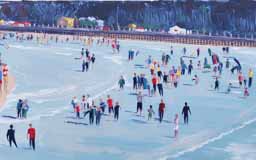 (7) Each of the 7 oil paintings was completed by an equal number of painters working in Xiamen, China. Fischer puts the work of these trained hands in direct visual argument with the mechanically reproduced print: he suggests deliberation about the capitalist mechanism and simultaneously entertains his moral ambiguity within this landscape of unapologetic consumptive socio-culture.