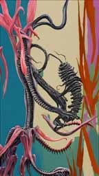 Alex Fischer, a self-styled “sociologist of internet culture”, combs the web for diverse images drawn from art, science and technology. These he twists and turns, mows and mulches, to produce brand new entities in the forms of digital paintings and sculptures that tease us with hints at narrative possibilities while straddling the borders of abstraction. [...]